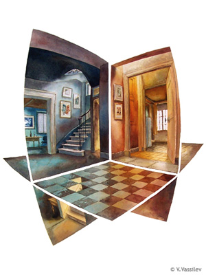 Тази серия темпери върху картон Арш представя архитектурни пейзажи от някои стари селища на югоизточна Франция. Старите градски части в Лион, Шамбери, Виен и Анси предлагат един удивителен декор, който тук е предаден под особен зрителен ъгъл. Вътрешни дворове, пасажи, вити стълбища и порти са изобразени чрез умишлено деформирана и невъзможна перспектива или под формата на оптична илюзия.